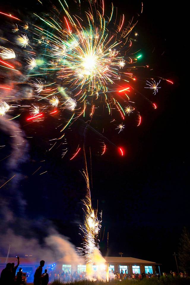 晚上的草原也是热闹非凡,每一个小村庄都闪着灯火。其实,认真看,那里还有焰火和篝火!