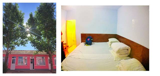 我们分到的是三人间。房间不大,带独立卫。房间里就是一个大火炕+一台电视机,火炕分成三个床位。第一次睡这种炕,觉得好神奇。火炕在北方的农村有,火烧起来炕就热了。领队跟我们说,这种带电热毯的炕容易上火,农村的火炕舒服还不上火。因为很晚了,洗洗就赶紧睡了。