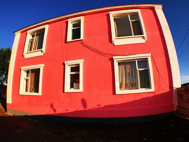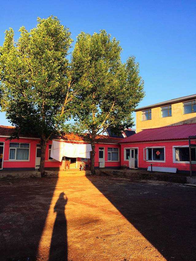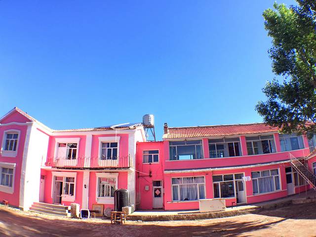 第二天一大早起来,发现自己住的房子好漂亮,围着一个大院子,墙面粉红粉红的,叫牧马人。对于我这种彩色爱好者,喜欢的不得了。