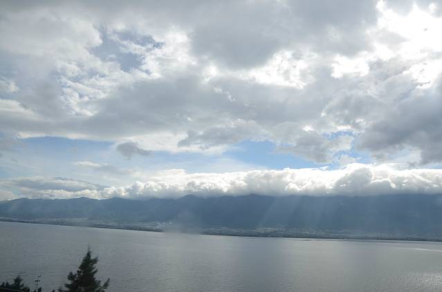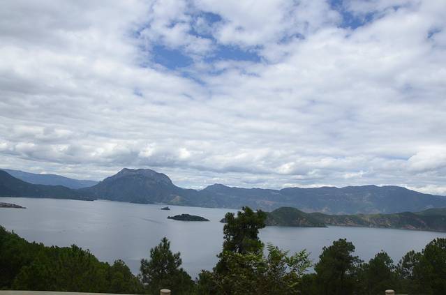心脏不好的人,可能一路上要提心吊胆了,司机也很猛的。坐了将近五个小时终于到地方了。先是到泸沽湖的购票的地方,真能下车买了门票才能接着坐大巴车,门票100.此时可以再那地方看到泸沽湖的全貌,