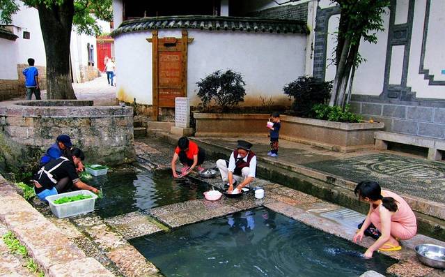 然后去三眼井看了一下,到现在竟然大家还都约定成俗,依然是第一口井水饮用,第二口洗菜,第三口洗衣服,正好碰到古城部分断水,好多拉水得车子,都去那边拉水。水质很好,由此也看得出来民风不错。