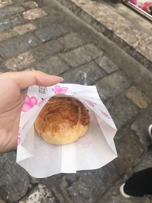 鲜花饼新鲜鲜花做的比较好吃,嘉年华的都是干鲜花做的不好吃不推荐,古城内有好几家这样的现做鲜花饼,自己可以尝尝看,还不错,我们买的是一剪梅家的。