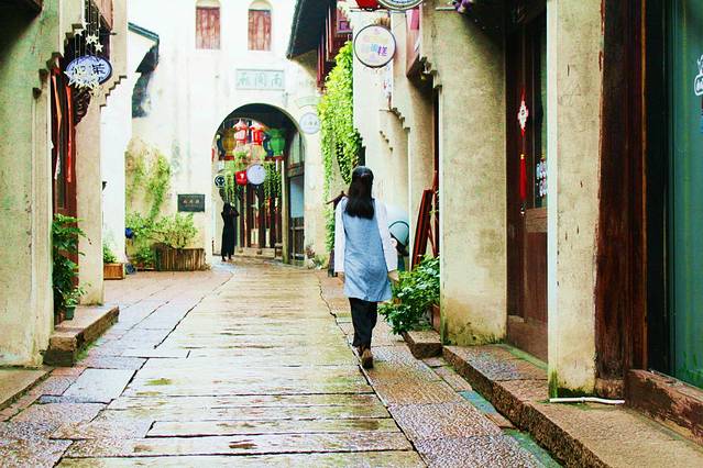 刚刚踏上海宁的土地,是一个阴郁的雨天,初秋的凉意在冰冷的雨水衬托下,愈发寒冷。一阵阵寒意随着裸露的手臂直接透进皮肤。作为一个怕冷的孩子而言,这个感觉并不十分舒服。
