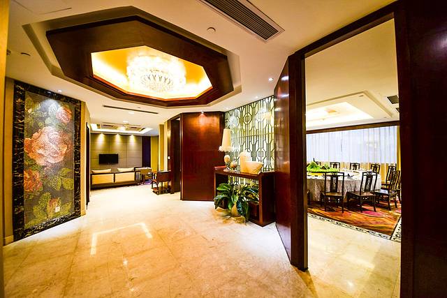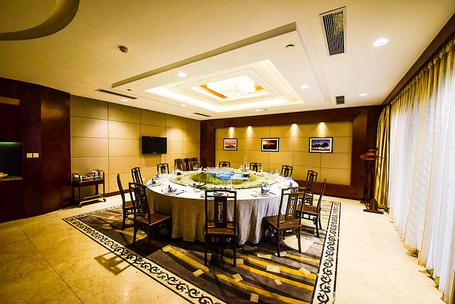 贵宾楼餐厅坐落于横店影视城境内万盛街繁华阶段,是整个横店影视城开业最早的四星级酒店,到目前而言也是最好的一家星级酒店,同时在前年的时候酒店管理者对酒店餐厅以及会议中心的公共区域进行了大规模的装修与整顿了。