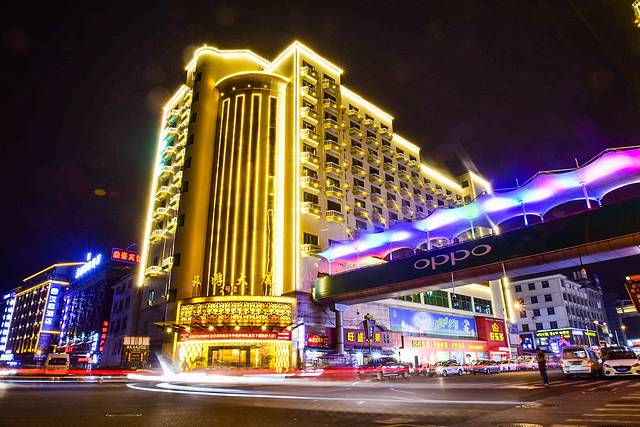 酒店的外观看起来很雄伟,在整个横店镇算是数一数二的高层建筑了。整栋大楼3-9层全部是客房,其余的为对外出租的商铺或办公场所。