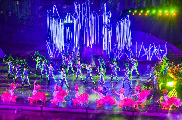 如果白天玩的不够尽兴的话,那么晚上来这梦幻谷欣赏一下华夏五千年文化精髓而构筑起来的演出吧,您一定喜欢的。