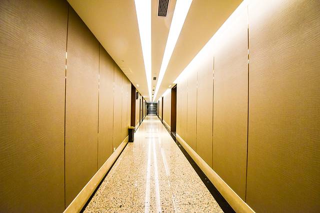 之所以选择旅游大厦是因为这是横店影视城最早配套的酒店,而且2号楼是在最近几年伴随着酒店住宿的需求的暴增而新开业的。连客房之间的过道的环境也是非常不错的了。