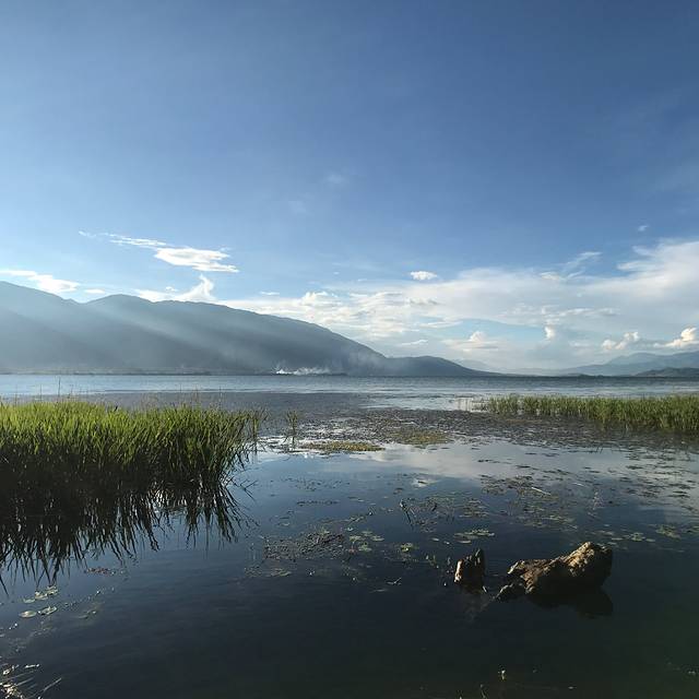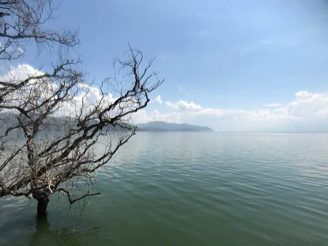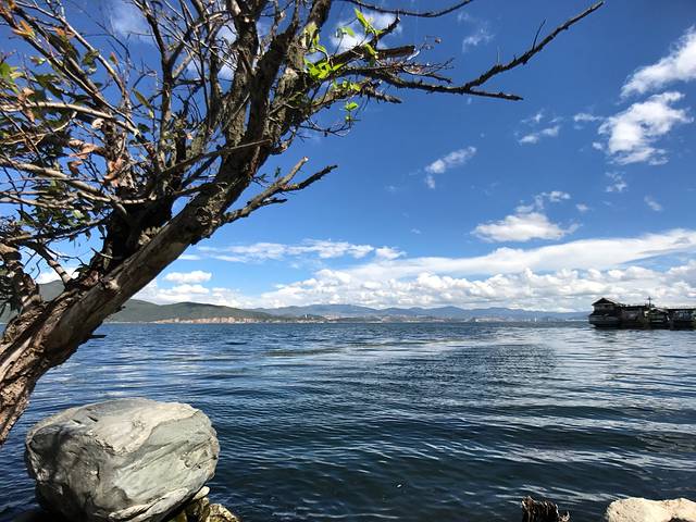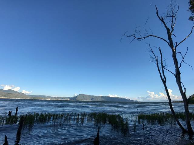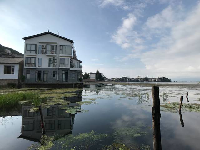 所以走过之后发现,还是买直飞大理或者包车的方式较为合适。做攻略的好处就是有较为清晰方向选择交通,第一天出行就是不做攻略没查好路线的结果(耗时!)去双廊的一路是环洱海线,虽是晚上,但是一路颠簸修路,两边客栈灰尘遍布歇业关店的状态不免让自己心凉一截,虽有看到马蜂窝的提醒要做好双廊在整治修路排污的心里准备,亲临其境后还是很惋惜来的不是时候呀。因为保护洱海行动所以很多客栈关闭,到处都是“洱海清,大理兴”的标语,听说是从去年修到现在,要修到明年底,可见这个行动规模之大叻,所以晚上没有路灯,颠簸一阵总算到达客栈。