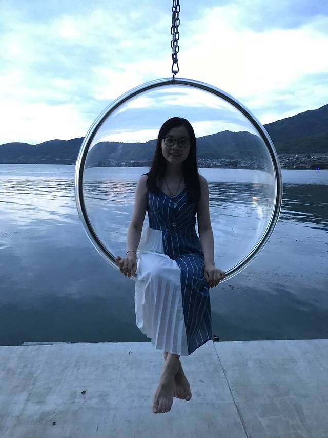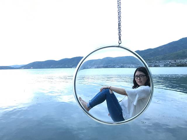 接着还了电动车就又走路去了玉几岛(10元参观费),这个地方距离南诏风情岛很近,完全可以上午去参观的,我们在临太远下山前就匆匆去看了青庐,太阳宫(杨丽萍酒店),月亮宫(杨丽萍在双廊的住宅,名人住宅往往非常隐蔽,仅隔十来米也只能看到住宅外面一小角,建筑设计总是恰到好处的符合风水又远离喧嚣),参观完去了岛上一处地方,私人设立的洱海边的玻璃球和白桌子(5元任意拍照)来到就彻底嗨起来了,可惜已经快天黑了,趁着最后一点余光拍了几张照片,总算拍到玻璃球和白桌子,双廊之行完美结束。