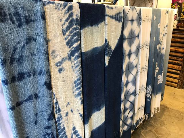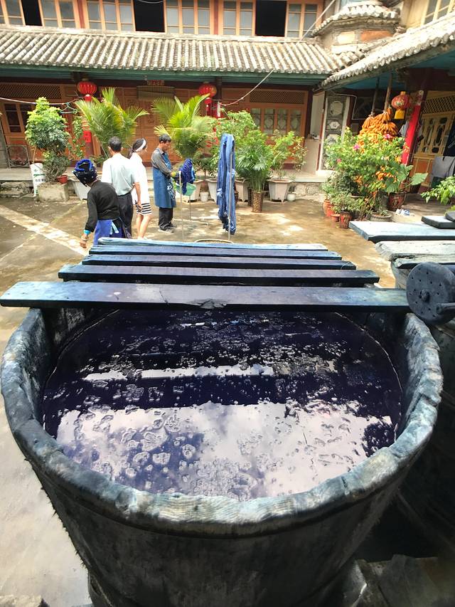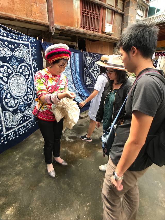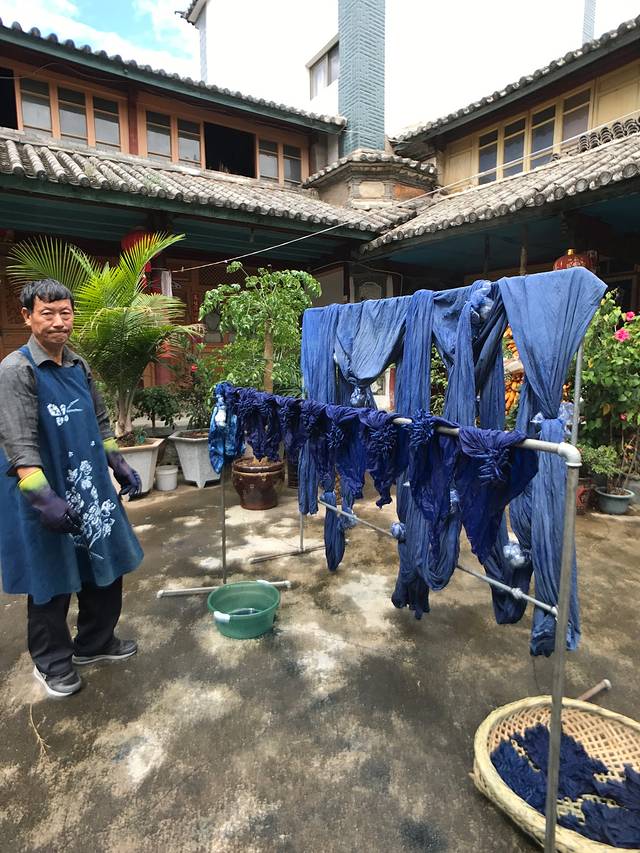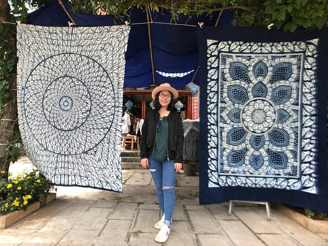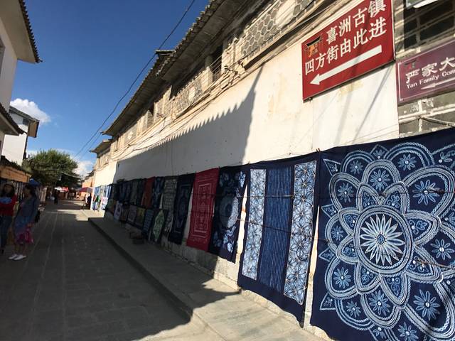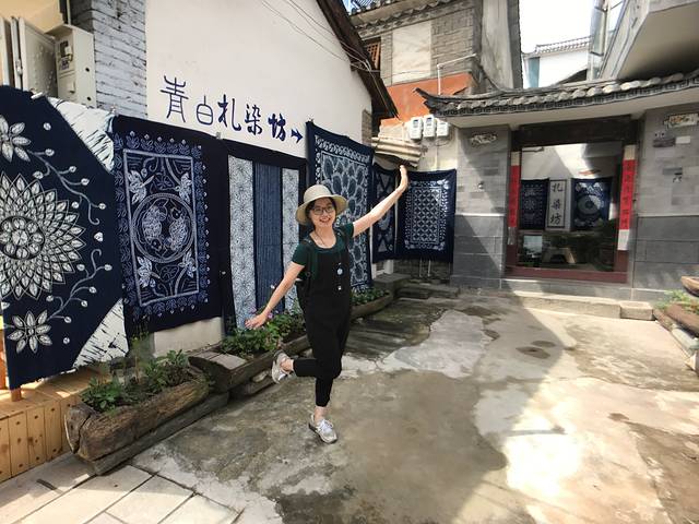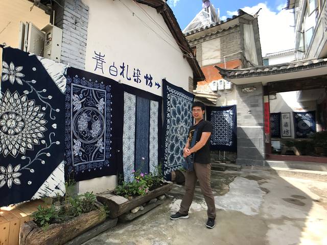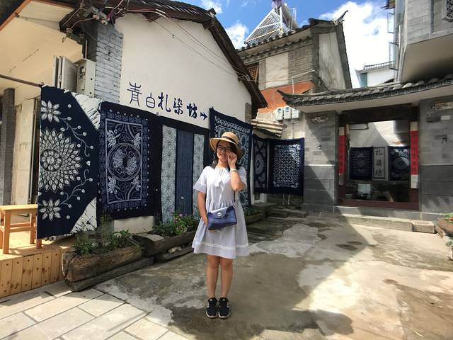 今天是在大理的最后一天,计划了两个地方,扎染之乡周城村,看环海美景的才村,地方不大,在西门有去周城的中巴,然后在周城扎染一条街下车,临街是一些卖扎染的店铺,其中一家是叫青白扎染坊,店里的扎染质量很不错,品种也多,有浅色系扎染,比较适合年轻人一些,这家扎染是已经申请了专利和品牌的,所以质量和设计都不错,明码标价,店家是学美术的,自己设计作品然后给家人缝制然后染色,她家的扎染是纯天然植物染色,所以布料和色系都不错,价格自然也不低,也参观了她家的染坊,买了好看的抱枕袋;然后沿街继续前行,一位阿姨带我们穿街走巷继续参观她家的扎染,这家的质量明显会不如青白家的,算私家小作坊,但是仔细挑选和砍价也是能选到心仪实惠的扎染围巾和布袋,周城很小,主要是看扎染和买扎染,这里肯定比周边景区的便宜的多。