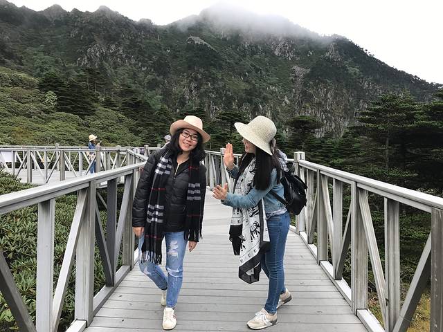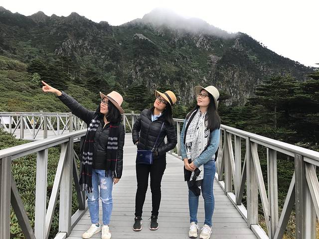 这个季节上去看的真的是苍翠的山,还没有雪,下了缆车后,大约中午12:00点,开始慢慢爬山,去到好多几个观景台,山上云雾弥漫,时阴时晴,没雪没花的季节真的就是观赏云雾和冷杉和山峰了,在高海拔爬山非常不容易,时而爬山时而下坡,一两个阶梯都让人气喘吁吁,一定注意及时补充能量和保暖,步伐缓慢,不然氧气接不上就很累了,山下短袖长裤,山上加个薄款外套或者薄羽绒外套围巾即可。终于爬到海拔3966的观景台,另外两位老人家爬过玉龙雪山却没爬上来海拔3966,我和Ada倒是像激动的小孩一路直上,之后又赶紧爬坡返回缆车站,因为要下去半山腰感受半山的其他景点,下去后只剩下不到1小时,就在半山观景台休息拍照,此时就没办法去其他半山的景点了,来回路程时间也久,因为最后一趟缆车是4:00,所以其实要充分感受苍山,一定要早一些上午抵达,这样就能慢慢悠悠的去好几个地方,毕竟在高海拔的地方步伐是要缓慢的,边走边休息,所以时间要充足的预多一些