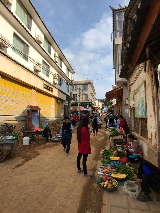 上午从酒店走路去南诏风情岛大概15分钟,一路上经过双廊古镇,小镇很多居民来往,更是他们的市集买卖地所在,路边除了一些当地生活便利店,其他衣服店饭店特产店已经关闭,所以暂时没什么好逛的,很多巷子穿出去就是洱海边,只是近居民区可能污染比较严重所以海藻蔓延海面,影响景观,古镇街道唯一的特色就是尘土飞扬路面坑洼了吧!
