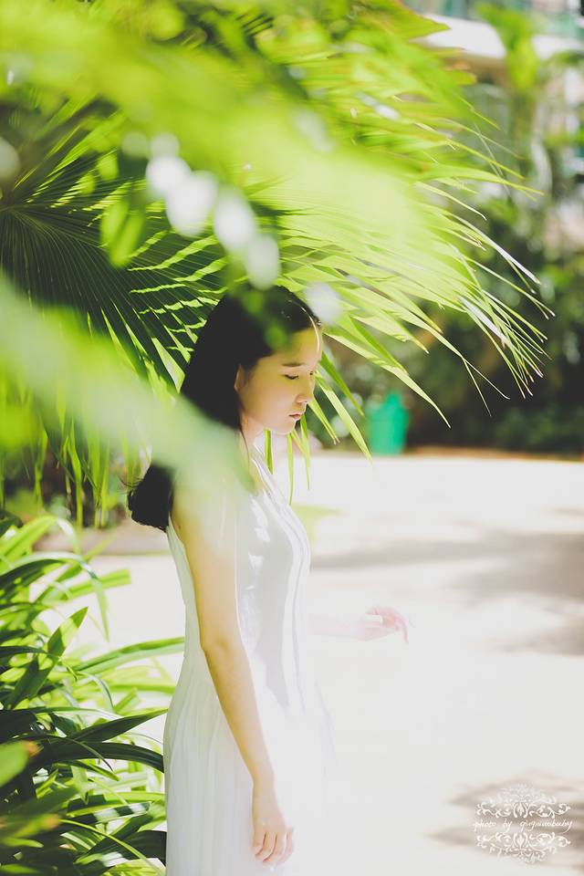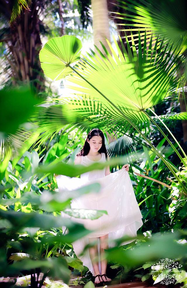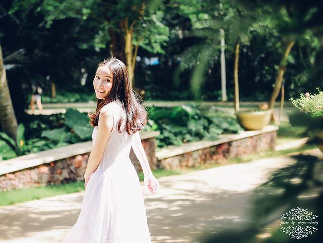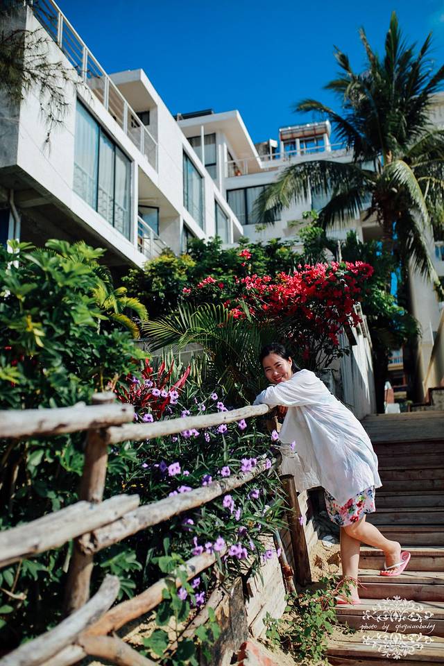 还好,第二天一早就放晴了。台风走三亚打了个擦边球就去了越南。我们一大早就到庭院里追着阳光臭美,有好光线了,心情也美的飞起来。