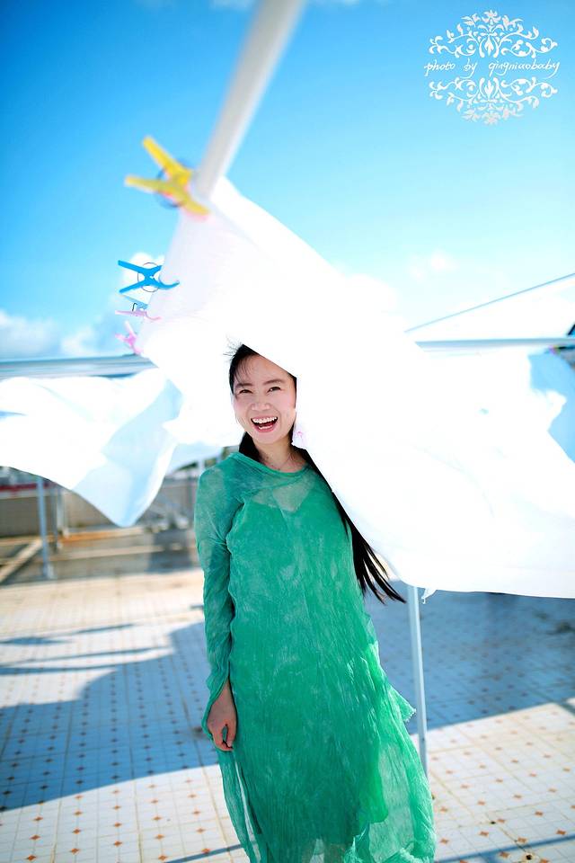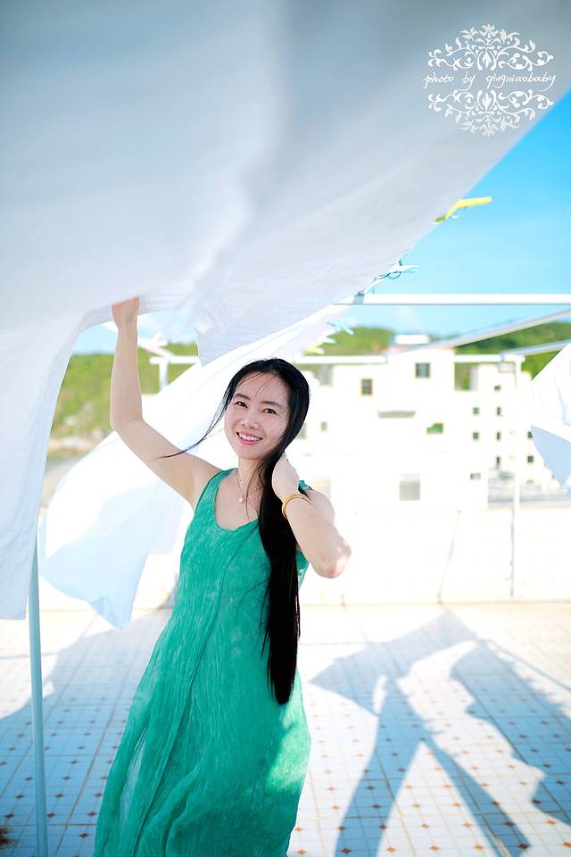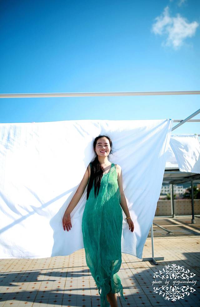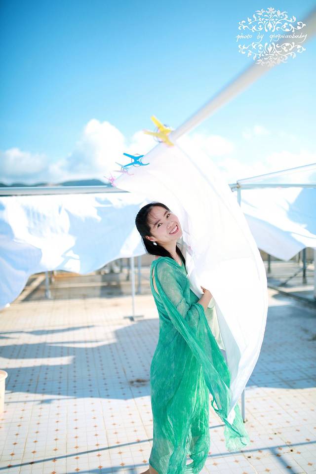 后来我们跑到楼顶层去想看看180度海景,发现顶层有无数的白床单在海风里徜徉,这景致真梦幻。DD赶紧扑上去大喊:这不是免费的打光板吗?快给我来几张!