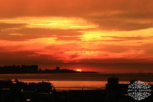 傍晚时,东边乌云密布,西边竟然云霞满天,还看见落日了,真是奇迹。要感谢台风天,总是给我们惊喜。你以为俩眼一抹黑,谁知道是台风走过撒下的旖旎风光。