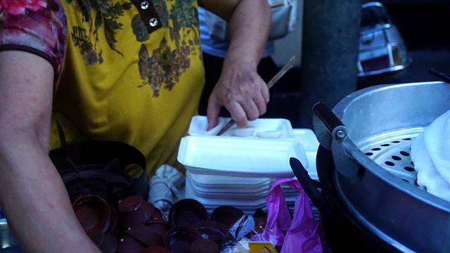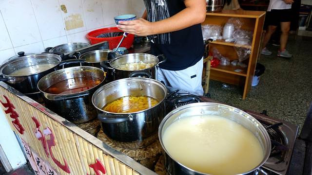 到了镇记,着实把我们惊讶到了。早上10点左右竟然已经排起了长队。旁边的吃饭的地方也是一桌难求。考虑到我们昨天吃蚝烙热得满身是汗,而且本来也打算试试客栈楼下的老七粿汁和李记甜汤,所以我们决定这三样都打包回酒店,边享受空调边大快朵颐