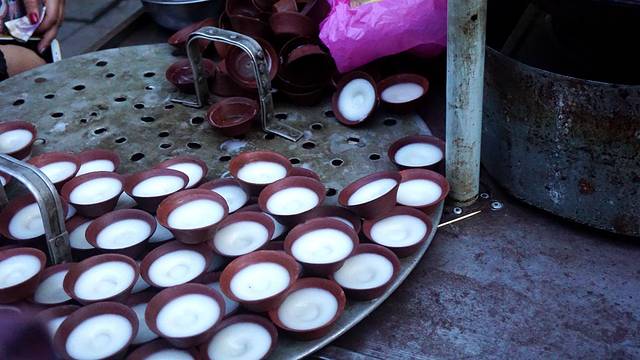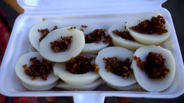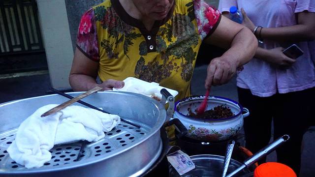 吃完胡荣泉出来后,在状元牌坊附近闲逛。看到马路边上聚着很多人。凑过去看一个大妈正在卖咸水粿。没有招牌也没有听说附近有推荐咸水粿。不过本着相请不如偶遇的心态,我决定加入到排队大军。事实上是老婆去排队了O(∩_∩)O。我跟女儿在附近拍照瞎逛。