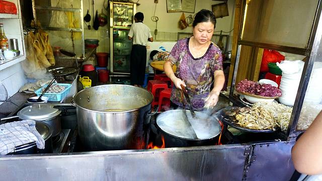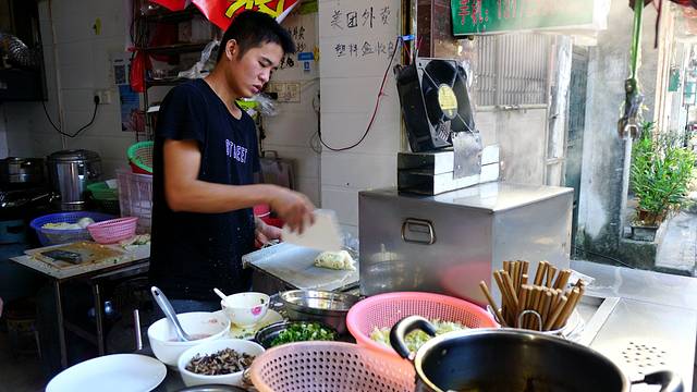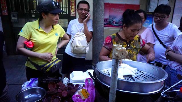 吃完早餐后,牌坊街上的美食也就剩下一个老七粿汁和李记甜汤,这两家店都在客栈楼下。我们决定先舍近求远去吃好评如潮的镇记老尾牛杂。本来还想去吃十八曲鱼饺,但是看网上说只有下午五点才营业,只好放弃了。不过中午去动车站的时候坐车有经过这家店,貌似店是开着的。所以有兴趣的人可以研究下到底现在还是不是5点才开始营业
