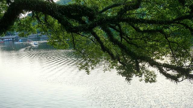 西湖最神奇的地方在于树的躯干上长满了草。据说这个是因为这里的空气特别好才有这种奇观产生。第二天我们来镇记老尾牛杂的时候(就在西湖对面),感觉果然空气是特别清新