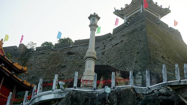这面城墙是潮州最古老的城墙。来自明朝。其他都在日寇轰炸潮州的时候被炸毁了。据说之所以没有轰炸这里是因为日本人当时为了保护佛灯不被破坏。沦陷后佛灯也被日本人运回日本了。现在这个佛灯是后来重建的。