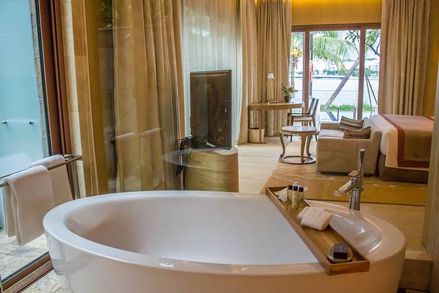 这就是新加坡圣淘沙名胜世界的海景套房,只有11套,想要与鱼儿以及蔚蓝的海水一起共眠,一定得提前预约。