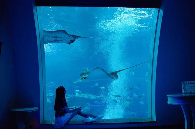 在这里可以与海洋生物近距离亲密接触,氛围浪漫至极,所以这里也成为一个求婚的浪漫之地,在这里求婚的人儿和明星不胜枚举。游来游去的鱼儿见证着这浪漫的时刻,爱情在这深邃的经典蓝色海洋中得到升华,太浪漫了,被求婚的妹纸肯定连连点头说“我愿意”。