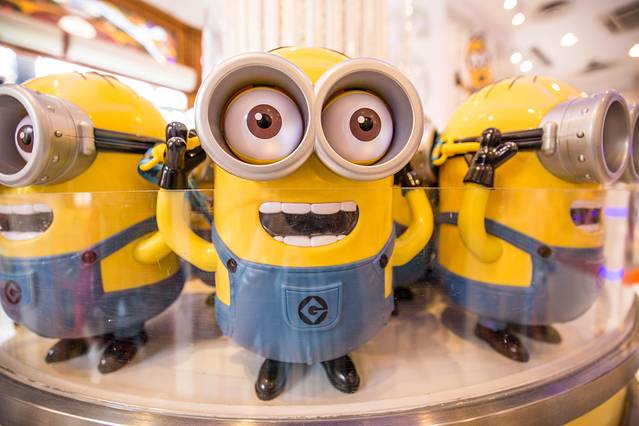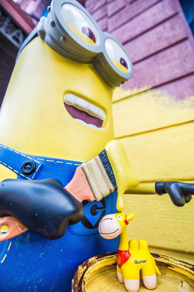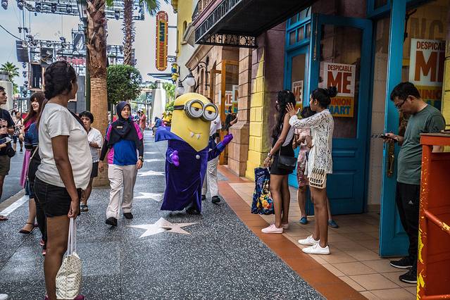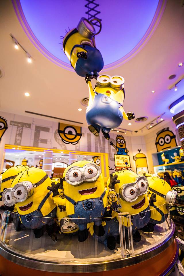 当然园内最红的要数神偷奶爸里的小黄人,小黄人和奶爸会不时出现在园区内,小黄人的周边店也是园内人气最高的一隅,每个小黄人周边都会让人爱不释手。