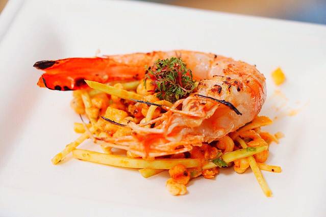 爱吃虾的我,完全被这道torched tiger prawn给折服,酸甜可口的青芒果与香脆爆米花垫着外焦里嫩的越式虎头虾,光是看外表就已经让人垂涎欲滴,虾肉入口又香又有弹性,伴着芒果肉的酸甜,爆米花的香酥,完全让人深深迷恋,以致无法自拔。