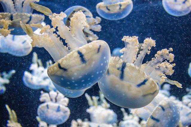 不得不说在海洋馆里,快门杀手非水母们莫属,不同种类的水母都会成为游客围观的重点对象,一个个如果冻一般晶莹剔透,满是弹性的魔鬼步伐,让人不舍吹过每一个它们移动的瞬间。