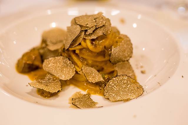 让我吃到幸福感爆棚的意大利面炖牛肋骨肉于黑松露,好吃到感动,想哭,每一口意面都充分吸收了浓郁的酱汁,每一口下去幸福感都油然而生,牛肋骨肉也软烂可口,入口即化,黑松露让正道意面得到完满。一道食物让人吃到幸福的感觉,我认为这就是人间珍馐的真谛。