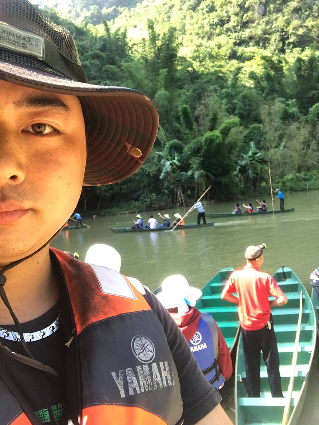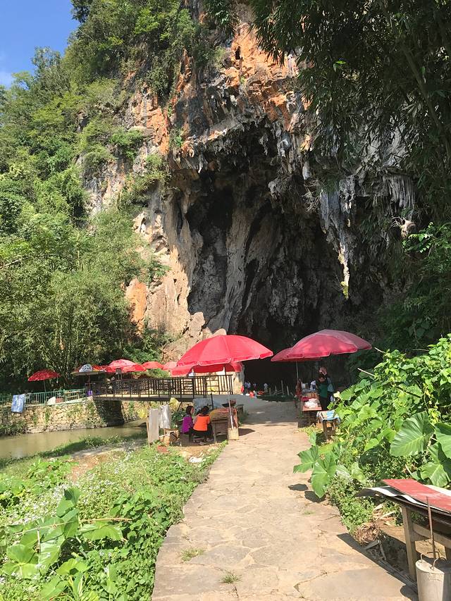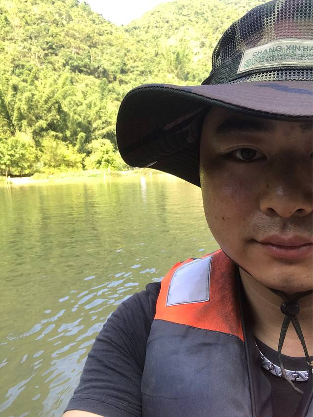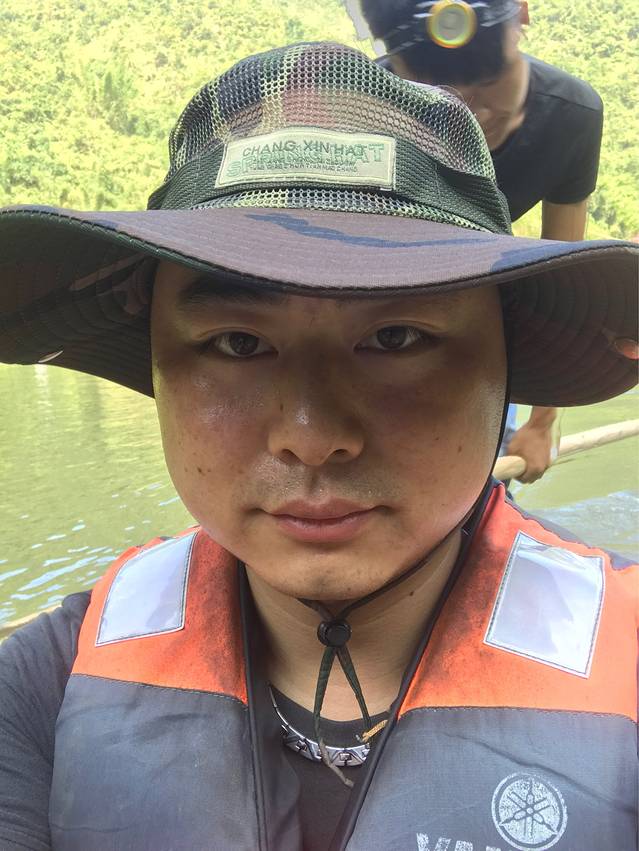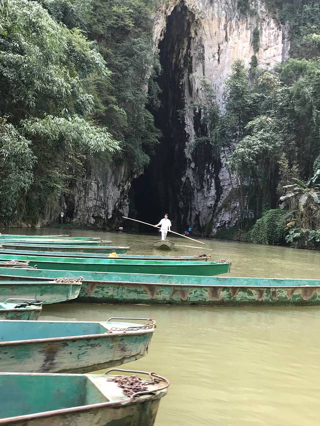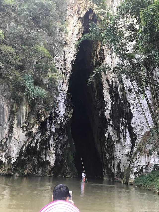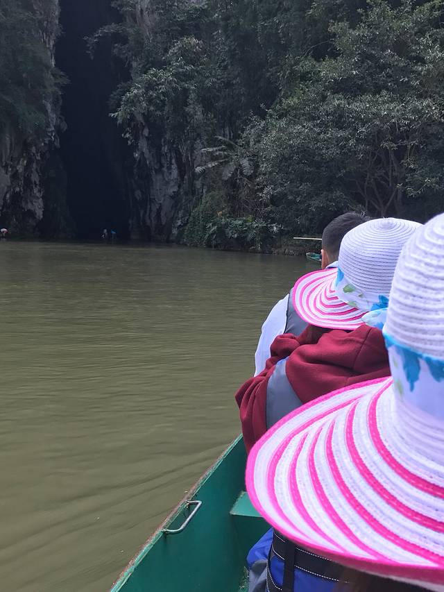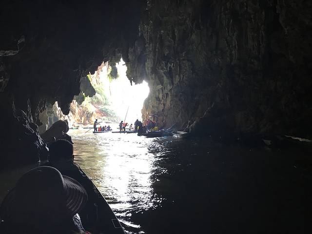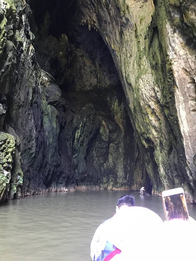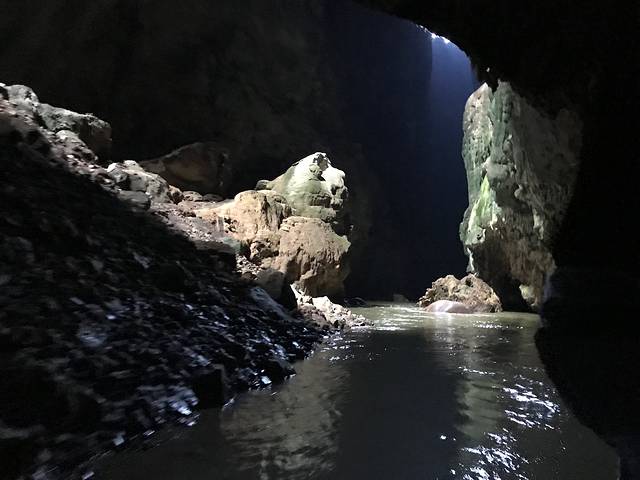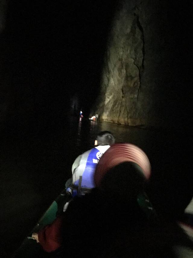 山洞里没有照明灯,摆渡人带了一个头灯。