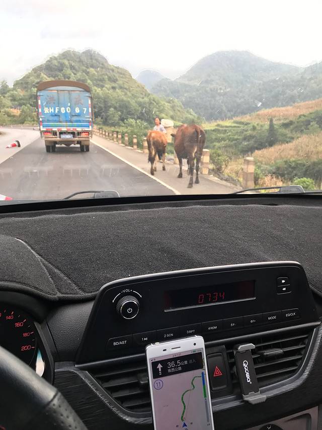 从云南玉溪出发,开了一夜的车,走夜路很累,但终于天亮了,下了高速,来到珠西公路距离坝美还有70多公里。