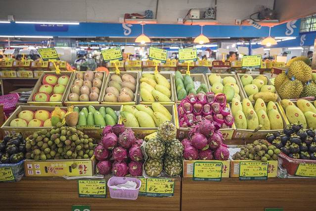 三亚的热带水果是最受欢迎的了,芒果、山竹、莲雾、榴莲、荔枝整齐的码着,标价一目了然。这里的水果还可以打包快递哦。