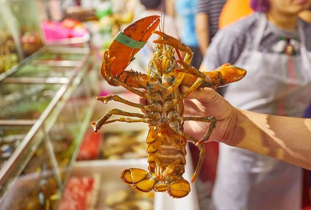第一市场较之上次到来,已进行过翻新,规整了许多。海鲜区、水果区都有清晰划分,方便采购。生猛大龙虾,150元一只,不算便宜。