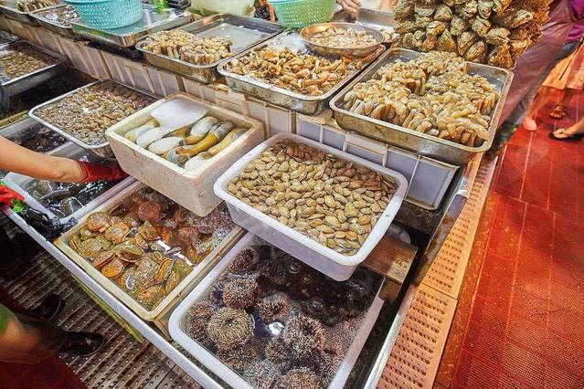 不过我们对于海鲜是一无所知,为了买得更放心,我提前联系了网上大热的“小米川味”,让老板带着我们去采购。这样老板更懂行情可帮忙讲价,也能挑选到更为新鲜的海鲜。不用担心老板和市场里的人有猫腻,可以自己选定摊位。