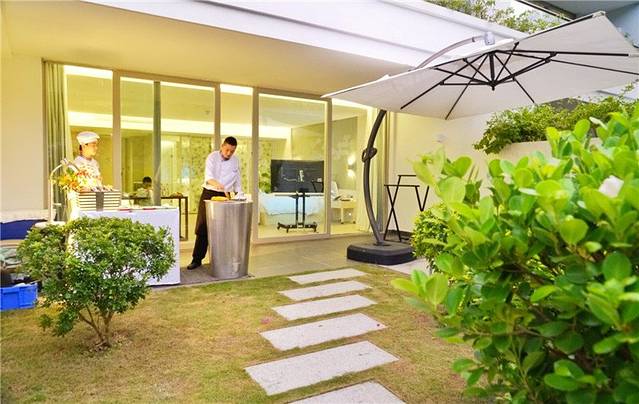 迎宾馆酒店设有338间客房,74间面积超过80平方米的超大湖景房及53席独立别墅、1席总统别墅及建有13间房的附属别墅。客房均配有55寸曲面液晶电视、KingKoil睡眠床垫,整个酒店布局都很合理,私密性也很好,酒店内随时都有摆渡车,每栋别墅大厅处都有电话,直接拨打0,直通前台大厅。
