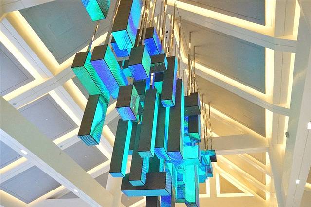 大堂中间巨型LED灯饰不断的变换着色彩,这样动感奇幻的视觉盛宴,有点十足的现代科技感。