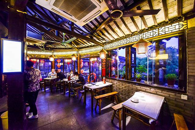 不过呢,这样的感觉在餐厅的一楼更为明显,一楼的窗户较矮一些,能够轻松的看得到河中流动的河流与南来北往的船只在这里汇通而过。二楼看到这样的景致的效果可能会差一点了,不过二楼的好处就是更加的安静,不喜欢吵闹的人或者几个朋友一起来玩的话可以选择在二楼慢悠悠的享受着慢节奏古镇生活。