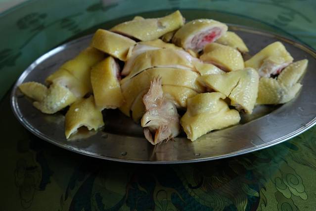 插曲:从大斑石出,已经中午,返回几公里的杏花镇吃饭。这是一项重要的内容,吃广东四大名鸡之一——杏花鸡!随便点了两个小菜,重点是吃鸡啊。上来了,鸡说白切的,个头不大,据说这是杏花鸡的特点。冷盘上,切开的骨稍稍带点红,鲜而不腻。再来一盘“九几”菜汤,一盘凉瓜煎蛋,一小桶白饭。已经吃得我家两大两小,嘴舔舔了。
