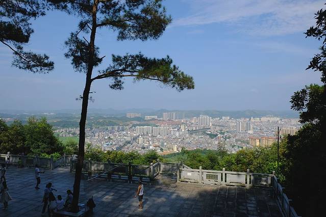 一切都是如此的简单,空气是很清新的,不少本地人在登山,估计只有我们是外地人吧。山不高,30分钟左右终于就到了一个比较大的平台,能俯瞰怀城城区,有市民在看风景,有的打羽毛球。