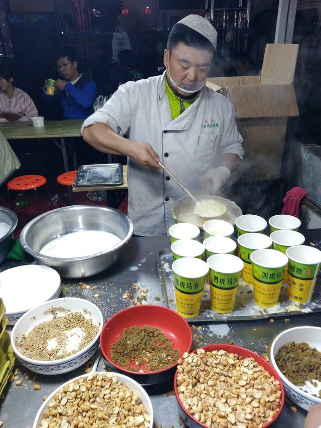 因为在张掖耗费体力太多,大宝下午睡觉就没醒,一直睡到五点多才起床,只好晚上去正宁路夜市,传说中的最诱人的小吃街。确实火爆,晚上九点左右还挤不进去,各个摊位前都排着长队。没办法只好选择不远处的一个饭店吃点烤串,临近晚11点左右又溜达过去。天啊,还是那么多人,没有减少的迹象,转了一圈,找了个相对来说队伍的人排的不是很多的摊位,买了一份马爷爷鸡蛋醪糟,往回返的时候也都将近半夜12点了。