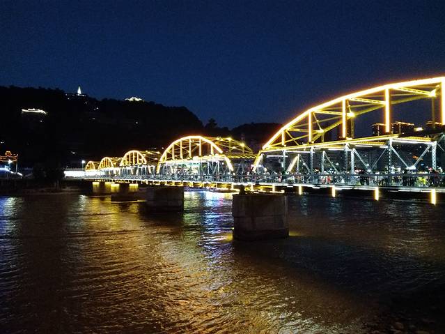 兰州是黄河穿城而过的城市,黄河沿线的风景区,黄河母亲雕像、风车园、中山桥虽然都算是兰州的标志,但可观性真是比较小,无非就是一条观景线,沿黄河边一路走走感受一下母亲河源头的滋润生养、奔腾不息吧。中山桥的夜景还真是不错,桥下黄河水滚滚向东流,桥上游人如织,站在一侧观圆月映照两岸,听邮轮笛声阵阵,心情特别惬意。