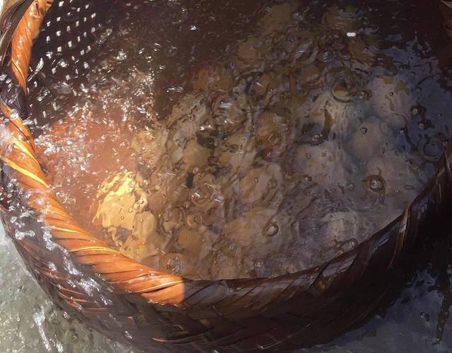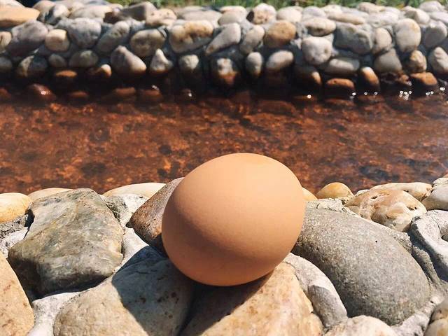 鸡蛋装在篮子里放入沸腾的泉水,泉水咕嘟咕嘟冒泡,鸡蛋也随之上下轻微晃动。工作人员介绍,温泉水煮出来的蛋,蛋白未熟,蛋黄先熟,且富含微量元素!