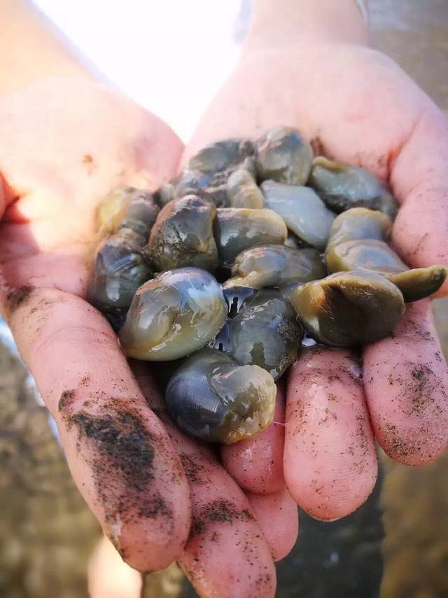 渔民告诉我,这是泥螺的“生的蛋”,泥螺就是通过这样的方式散籽的!头一回见到这东西,开始还以为是鼻涕呢~
