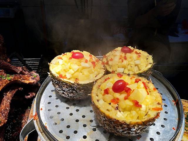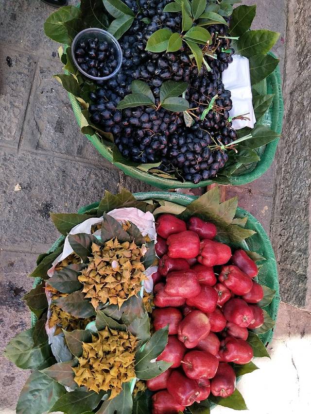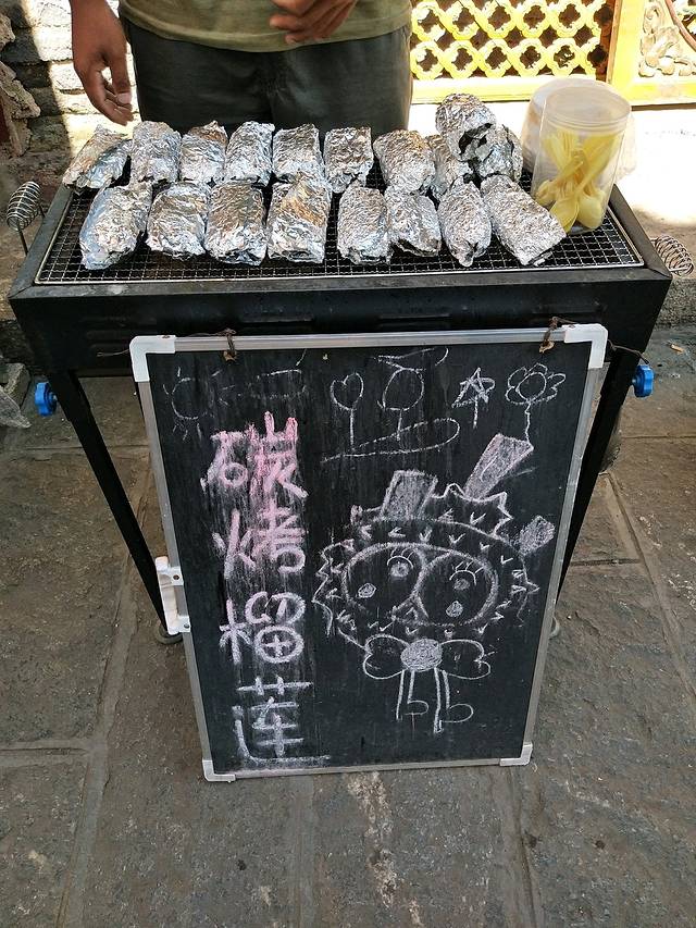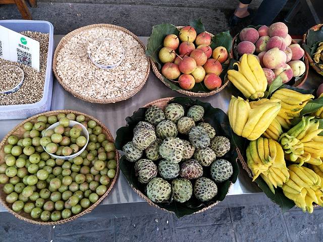 离开洱海后我们前往喜洲,在喜洲步行街,我们被各种各样的小吃吸引,有大理特色小吃例如烤乳扇、大理粑粑、鲜花饼、松子酥等,也有现代小吃如碳烤榴莲。烤乳扇非常值得尝试,在来的路上司机向我们介绍了大理的特产,其中之一就是乳扇。淡淡的牛乳香,经过加热后香味更浓郁,脆脆的,非常可口。步行街上有老人家用簸箕装着云南特有的水果在卖,好多水果没有见过的,我们问老人家,老人家用当地语言回答我们,可是我们完全听不懂,因此截止我们离开了还是不知道那些水果的名字。步行街墙面都挂着好多漂亮而带走浓浓民族风格的布,后来我们问司机师傅,师傅告诉我们那是大理扎染,这是传统手工艺术。