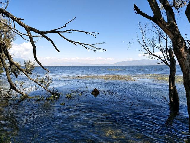 司机师傅带着我们去到第一个景点洱海,刚到海边我们已经惊讶了,我们都是来自海滨城市,可是还是被洱海的美给震惊了。虽然海面漂浮着绿藻与水葫芦,但不影响洱海的美丽。海边当地居民摆饰了浪漫的道具,让游客拍照,不得不说,这样拍出来的照片完全是旅游杂志上的感觉。大理因为休排污系统,海边的酒店等都被禁止营业,但不影响爱拍照的我们。