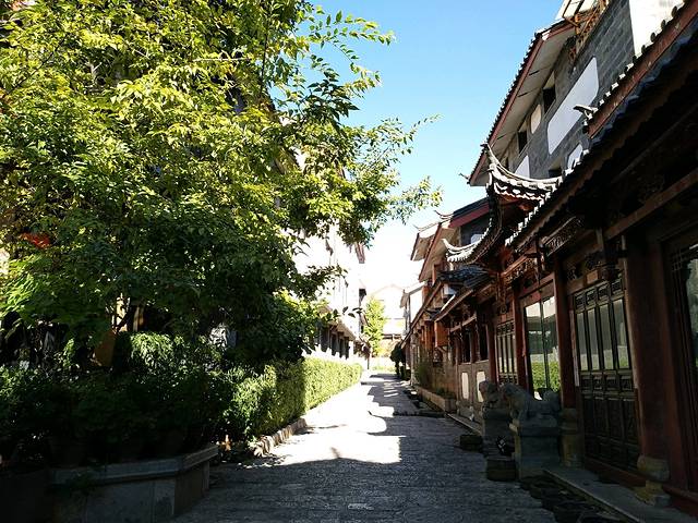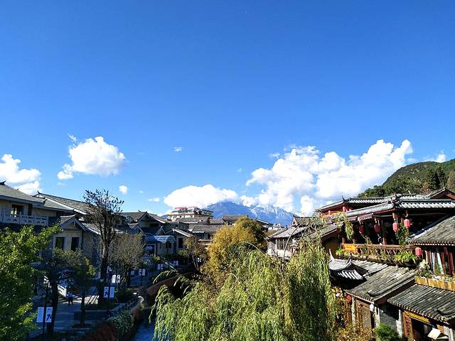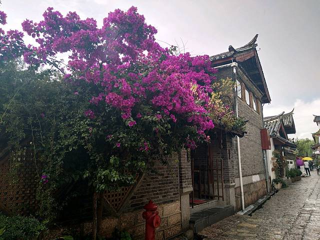 到达丽江后,这边开始下雨,因汽车不能开进古城,我们扛着行李撑着伞艰难地走向大研古城内部,可是我们谁也没抱怨,朋友也没有抱怨我预定的客栈在如此艰难走路的地方,如果在旅程中,同行的小伙伴稍微有抱怨的,这让旅程快乐就大大打折,所以我们来之前都约定好不得抱怨,不管是什么事。也许美景让我们心情一直愉悦,对这样的艰辛也没有特别痛苦的感受,依然开心往前走,即使走错路我们也哈哈笑完再继续走。踩着起起伏伏的石板路,撑着雨伞,扛着行李,看着错误的导航,最终找到了隐藏在小巷内的客栈,老板娘还赞我们居然能自己找到客栈这里。放下行李我们就准备出去,我们接过老板娘递来的古城地图,我们才明白老板娘刚那话的意思,大研古城竟然如此大,虽然刚进来已经觉得小巷错综复杂,看地图后觉得古城像是迷宫一样,丽江当地人都说没有走完过古城。丽江古城人群熙熙攘攘,皆为利来,熙熙攘攘,皆为利往。到了这样的具有浓厚历史文化的地方,必须得知道古城的历史,倾听着古城所无声的诉说,这才是古城的魅力所在。丽江古城有三个,大研古城、束河古城和白沙古城,我们所游览的大研古城已经800多年历史,而束河古镇具有1000多年历史,白沙古城比较贴近丽江当地纳西族人的生活。大研古城基本全开满商铺或客栈,很多人说这太商业化,有种可惜的感觉,也许丽江古城跟我们想象的古城不一样,纵横交错的古街、鳞次栉比的古院及熙攘的游客,这古城仍然在无声诉说着她所经历的历史,以另一种热闹的面貌呈现在我们面前。