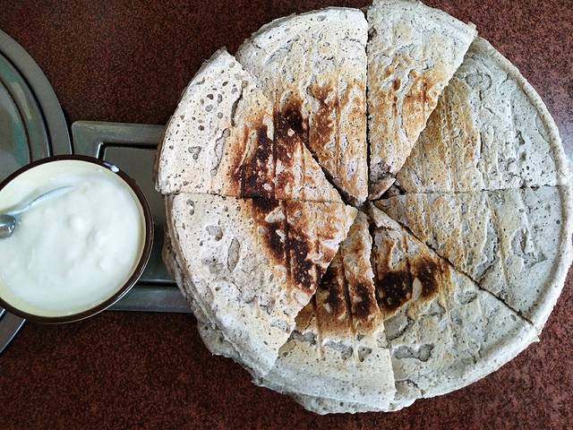 早上我们在客栈对面的小店吃早餐,本来想着只是解决温饱问题而已,但发现这家店的青稞饼、酸牛奶、鲜牛奶都非常好吃,淡紫色的青稞饼,上下两面稍微煎得金黄,咬下去表面脆脆的,然后青稞的甜味开始充斥嘴里,非常可口。一家不起眼的店铺,可是做出来的东西是如此的好吃,先入为主认为不起眼的店铺东西味道就一般,这想法严重错误了。犹如扫地僧深藏不露,这样小小且不起眼的店,可能提供的食物更原汁原味。吃饱喝足我们就坐顺风车出发丽江。