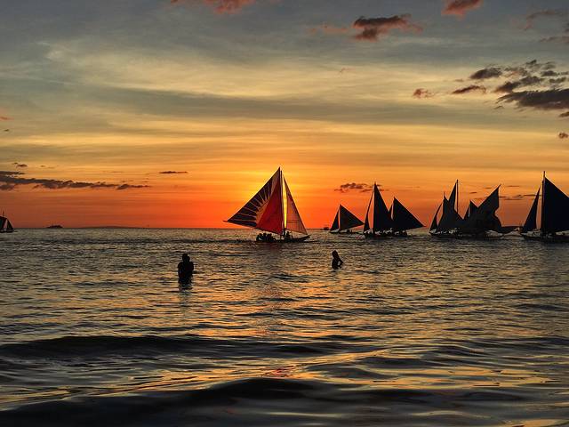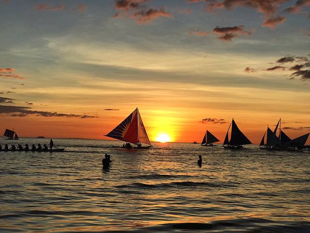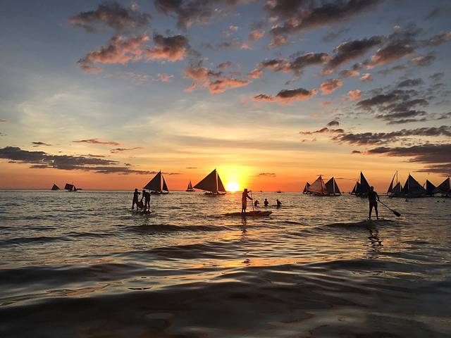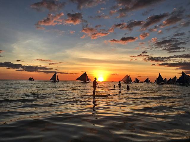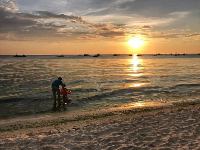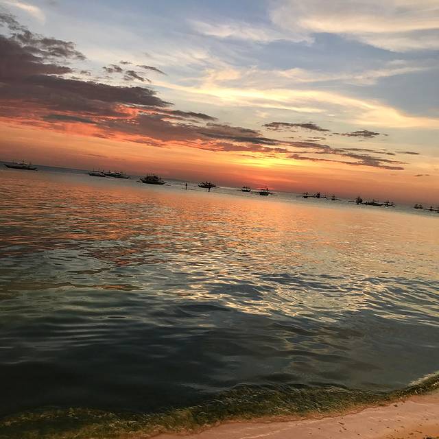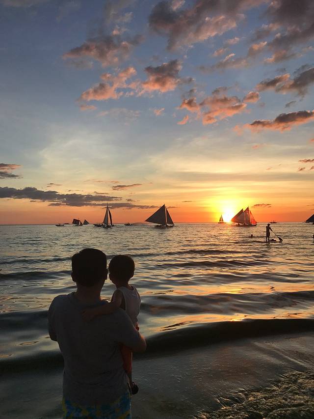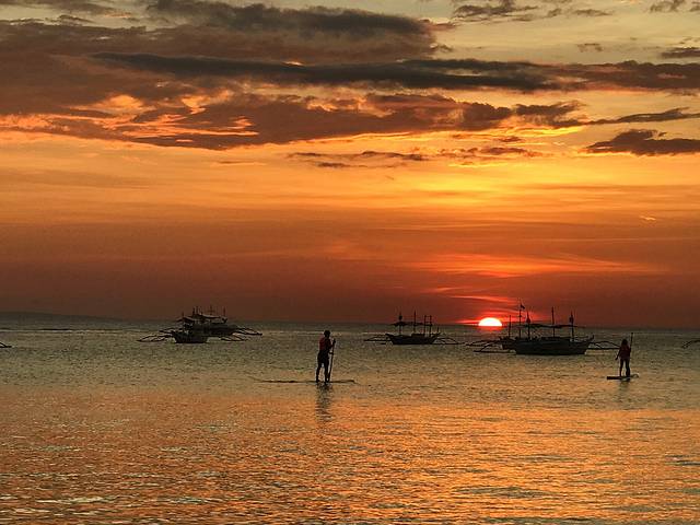 S2的落日多了帆船的点缀,显得更加生动活泼。我仔细数了数,粉色,蓝色,紫色,黄色,金色,红色,一个落日居然有这么多种颜色,真的好佩服大自然的鬼斧神工。谢谢Boracay给了我们如此极致的视觉享受,这里真的不愧为世界最美落日。