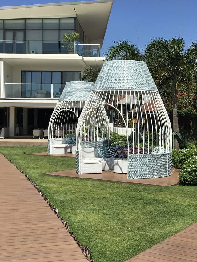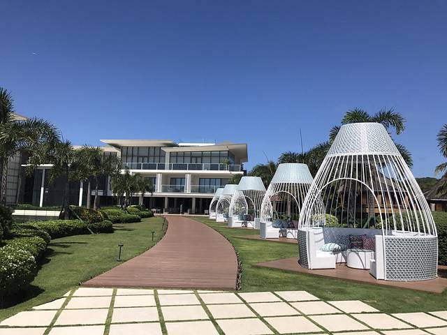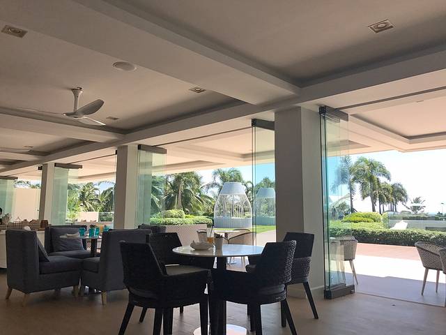 大堂望出去的景色,外面就是无边泳池和大海。